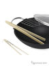 Сковородка-вок — удивительный предмет, который появился в кухонном арсенале, без преувеличения, несколько тысячелетий назад. Это один из самых древних кухонных предметов. Его родина — Китай. На таких сковородках на угольных плитах готовили еду китайские крестьяне. Ставили воки в специальные отверстия в поверхности плиты. Именно поэтому традиционный вок имеет выпуклое дно. Максимальный жар в коке сосредоточен в центре — так происходит именно благодаря его конусообразной форме. По бокам же температура меньше, поэтому в воках можно готовить одновременно сразу несколько продуктов, например, в центре обжаривать в кипящем масле мясо, а по бокам — овощи. Этот вок сделан из литого чугуна. Как любое чугунное изделие, для того, чтобы он долго служил вам верой и правдой, его нужно периодически прокаливать, смазав жиром. У вока множество функций: в нем можно готовить на пару (используя выпуклую крышку и решетку), жарить или тушить. Вок имеет специальное антипригарное покрытие — смесь стекла и фарфора. Её напыляют на чугун и затем обжигают при высокой температуре. Подставка из нелакированного натуральной дерева позволяет подать к столу блюдо в той посуде, в которой оно готовилось. Размер: 32х11х31.5 см.