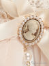 Элегантный отложной ворот из тонкого кружева с лентами из шифона. Спереди бантик из атласной ленты и подвеска в виде медальона. Завязки на ленты. Отличное завершение женственного образа!