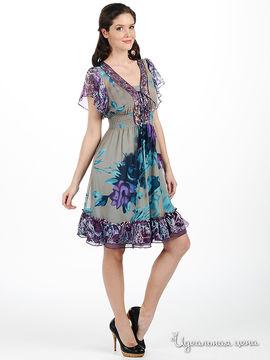 Платье Мультибренд женское, цвет фиолетовый / бежевый / голубой