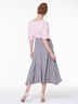 Юбка чуть клешеного кроя. Пояс-кушак в тренде сезона, скрывает неточности в области живота. Застежка на молнию и кнопку.