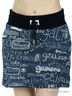 Детали: отрезной трикотажный пояс с кулиской; два втачных кармана спереди и один сзади на кнопке; декорирована оригинальным принтом