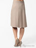 Трикотажная однотонная юбка-клёш длиной ниже колена, декорирована складками-клиньями, круглыми пуговицами и накладными деталями из "эко-кожи"; сбоку на молнии.