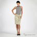 Светло-бежевая юбка из хлопка с эластаном. Декоративный пояс-бант. Прямой силуэт. Широкий пояс-кокетка. Сбоку застежка на молнию.