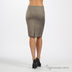 Серая юбка из хлопка с эластаном. Заниженная линия талии. Прямой силуэт. Широкий пояс-кокетка. Сзади застежка на молнию. Разрез-шлица.