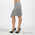 Серая юбка из хлопка с эластаном. Застроченные складки спереди. Прямой силуэт. Сзади застежка на молнию. Разрез-шлица.