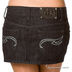Стильная короткая юбка из джинсовой ткани. Застежка на пуговицу. Четыре камана, шлевки под пояс. Логотип производителя выполнен аппликацией из страз.