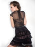 Детали: отрезной атласный пояс украшенный декоративным бантом, многослойная юбка из кружева и ткани в сеточку.