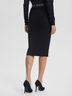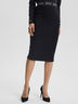 Юбка женская «BRMSK» от бренда Barmariska из плотного трикотажа. Модель прямого кроя с заужением к низу изделия, длиной ниже колена. Пояс выполнен из брендированной эластичной жаккардовой тесьмы.