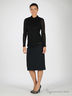 Юбка прямого кроя из тонкой ткани с шелковистой подкладкой. Застежка- молния, пуговица. Спереди наверху вытачки. Сзади изделия шлица.