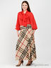 Длинная расклешенная юбка из плотного слабоэластичного материала с крупным клетчатым рисунком. Отрезной пояс. Подол обработан швом "в закрутку".