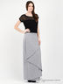 Изящная длинная юбка из плотного, эластичного трикотажа. Отрезной пояс дополнен широкой резинкой. Спереди юбка декорирована крупной фигурной драпировкой, эмитирующей запах.