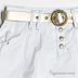 Красивая белая юбочка с передними кармашками на завязочках и золотистым ремешком. Спереди юбка застёгивается на пуговички. Сзади два муляжа карманов, на одном из которых апликация голубого цвета.