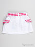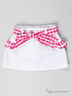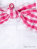 Детали: застежка на пуговицу, отрезной пояс дополнен резинкой, в шлевки продет батистовый пояс, декоративные оборки по бокам изделия