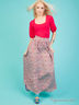 Расклешенная юбка макси. Широкий пояс на 2 пуговицах. Изделие выполнено из принтованной ткани контрастной расцветки. Отличный вариант на каждый день.