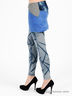 Оригинальная юбка из денима с трикотажными вставками на трикотажной подкладке. Передняя косая застежка. Два кармана - передний и задний. Отличный вариант для создания необычного образа.
