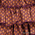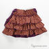 Расклешенный силуэт. В пояс вшита эластичная резинка. Юбка украшена оборками, создающими эффект многослойности, и декоративными завязками по бокам на поясе.