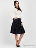 Стильная юбка из тонкой, плотной ткани с эффектом "хамелеон" и крупным рисунком, нанесенным с помощью флока. Отрезной пояс. Застежка на молнию. На юбке заложены крупные складки. Модель дополнена тонкой укороченной подкладкой. Прекрасный вариант для создания романистического образа!