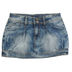 Короткая модель с пришитыми к поясу петлями для ремня. Юбка с эффектом потертостей.