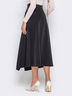 Оригинальная юбка-трапеция из костюмного крепа в узкую полоску. На полочке высокий разрез. Застегивается на молнию сзади.