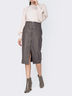 Стильная кожаная юбка. По бокам предусмотрены карманы. Застёгивается спереди на металлическую молнию.