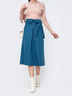 Джинсовая юбка-миди с широким поясом и посадкой на талии. Дополнена карманами по бокам. Застегивается на молнию сзади.