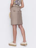 Юбка прямого кроя с эластичной деталью в поясе и разрезом сзади. В боковых швах предусмотрены карманы. Сзади изделие дополнено декоративными клапанами. Застегивается на скрытую молнию.