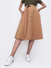 Расклешенная юбка с декоративным рядом кнопок спереди. Спинка изделия выполнена резинкой. В боковых швах предусмотрены карманы. Завершает образ трендовый пояс с карабином в комплекте.