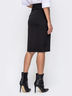 Оригинальная юбка-карандаш из креп-дайвинга со вставкой из эко-кожи. Модель с диагональной декоративной молнией спереди. Высокий разрез акцентирует внимание на ногах. Застегивается скрытой молнией сбоку.