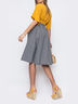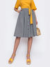 Расклешенная юбка в мелкую клетку виши с карманами по бокам. Застегивается на пуговицы по переду.