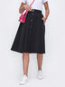 Расклешенная юбка с декоративным рядом кнопок спереди. Спинка изделия выполнена резинкой. В боковых швах предусмотрены карманы. Завершает образ трендовый пояс с карабином в комплекте.