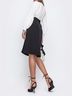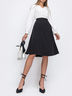 Классическая юбка-трапеция из костюмной ткани в полоску. В боковых швах удобные карманы. Застегивается сзади на скрытую молнию и пуговицу.