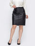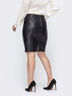 Юбка из эко-кожи длиной до колен, дополнена шлицей и молнией сзади.