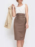 Юбка-карандаш с декоративными патами на широком поясе спереди. Застегивается на молнию сзади.