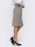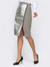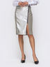 Оригинальная юбка-карандаш из креп-дайвинга со вставкой из эко-кожи. Модель с диагональной декоративной молнией спереди. Высокий разрез акцентирует внимание на ногах. Застегивается скрытой молнией сбоку.