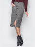Трендовая шерстяная юбка с карманами и разрезом спереди. Данную модель легко сочетать с однотонным гольфом или объемным свитером. Для роскошного образа выбирайте ботинки-чулки или ботфорты на каблуке.