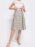 Расклешенная юбка в клетку с защипами на поясе. Застегивается на кнопки вдоль всей длины. Ремень в комплект не входит.
