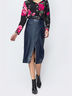 Стильная юбка прямого кроя из искусственной кожи с фиксированным запахом на полочке. Застегивается сзади на скрытую молнию и пуговицу. Высокий разрез акцентирует внимание на ногах. Ремень в комплект не входит.