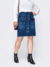 Джинсовая юбка с накладными карманами и рядом пуговиц спереди.