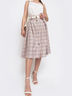 Расклешенная юбка в клетку с защипами на поясе. Застегивается на кнопки вдоль всей длины. Ремень в комплект не входит.