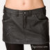 Стильная короткая юбка из натуральной кожи от известного производителя, декорированная нашивками и клепками.