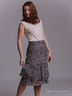 Широкая легкая юбка из мягкой шелковистой ткани. По низу юбки два больших волана. Застежка на молнию в боковом шве.