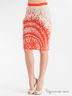 Льняная юбка-карандаш длиной по колено с двумя защипами спереди и косыми глубокими карманами. Юбка украшена ярким фольклорным орнаментом и контрастным поясом.