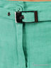 Детали: отрезной пояс со шлевками для ремня, застежка на пуговицу и молнию, два прорезных кармана спереди, шлица сзади, модель дополнена стильным поясом с прямоугольной пряжкой.