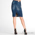 Стильная прямая юбка с разрезом сзади из джинсовой ткани. Втачной пояс и шлевки для ремня, застежка на молнии и на пуговице, четыре прорезных кармана, отделаны цепочкой золотого цвета в качестве декора. Длина юбки по колено, сзади с одной шлицей.