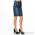 Стильная джинсовая юбка-карандаш с разрезной шлицей сзади. Пять карманов, передние карманы декорированы цепью.
