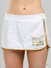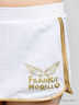 Стильная трикотажная юбка с золотистой отстрочкой и лампасами. Спереди фирменный логотип марки.