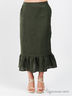 Детали: застежка на молнию и пуговицу сзади, два прорезных кармана спереди, юбка декорирована воланом.