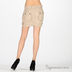 Мини-юбка льняная. Цельнокроеный пояс-резинка со шлевками для ремня. Застежка на молнию и две пуговицы. Два втачных кармана спереди и два накладных кармана с клапанами сзади. Декоративные элементы - хлястики.