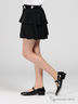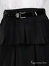 Расклешенная модель. В пояс вшита резинка, пришиты шлевки. Оборки с множеством складок.