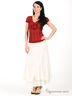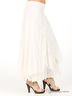 Детали: сверху посажена на резинку, сбоку застегивается на молнию, спереди украшена вязаным кружевом, многослойная юбка с воланами
